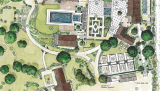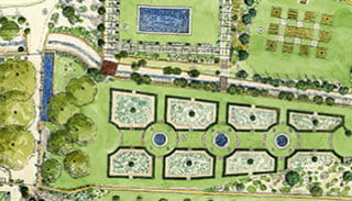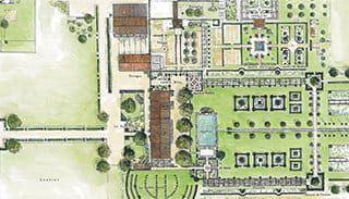 Axes, perspectives, niveaux, lignes, pleins et vides, ombre et lumière... l'architecture du jardin est pensée comme l'organisation d'un tableau.